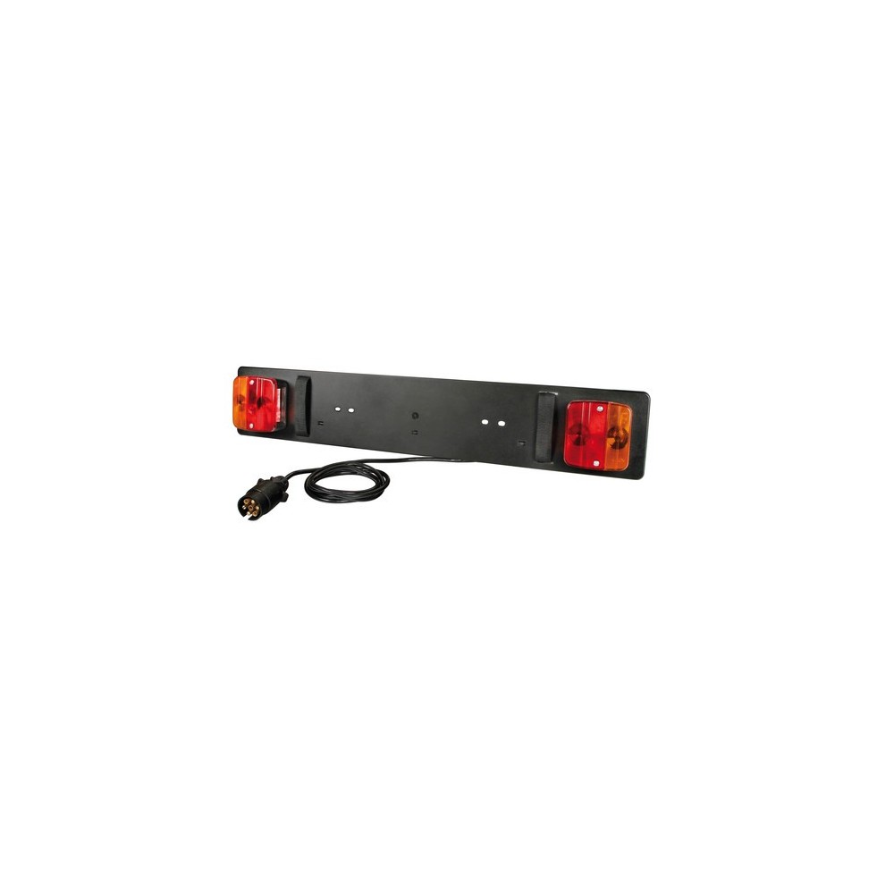 Completa di fanali omologati, lampadine, portatarga e cavo da 2 m con spinotto 7 poli.