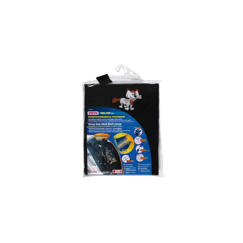 Appositamente realizzato per coprire e proteggere i sedili posteriori ogni qualvolta si utilizza la vettura per il trasporto di animali domestici, merce, oggetti... Universale per tutte le auto con sedile posteriore standard. Facile e rapido da utilizzarsi. Si posiziona in pochi secondi e si fissa utilizzando gli elastici ai 4 angoli. Con apertura per il passaggio della cintura di sicurezza. Lavabile (prodotto in poliestere impermeabilizzato con uno strato di pvc)