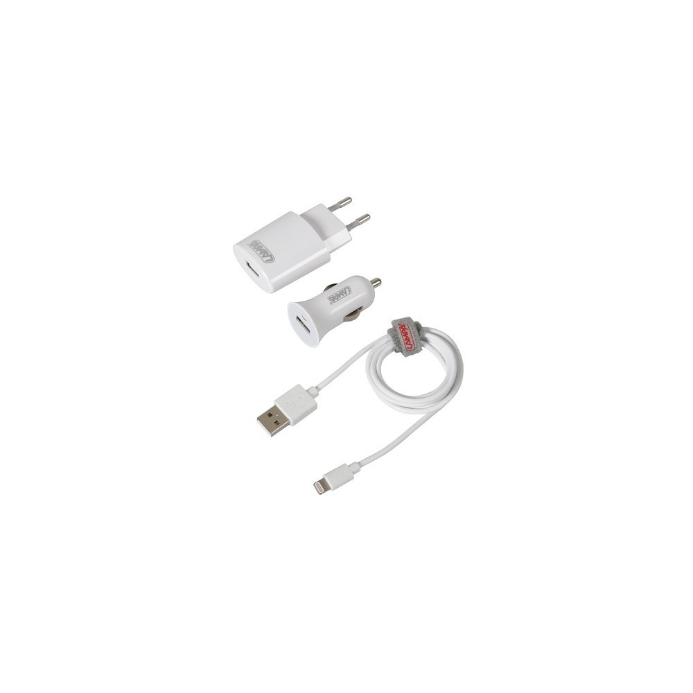 • Caricatore Usb da rete (2400 mA) • Caricatore Usb (2400 mA) con spia a Led • Cavo ricarica e sincronizzazione Lightning (100 cm) Protezione da sovraccarico, surriscaldamento, sovratensione e corto circuito