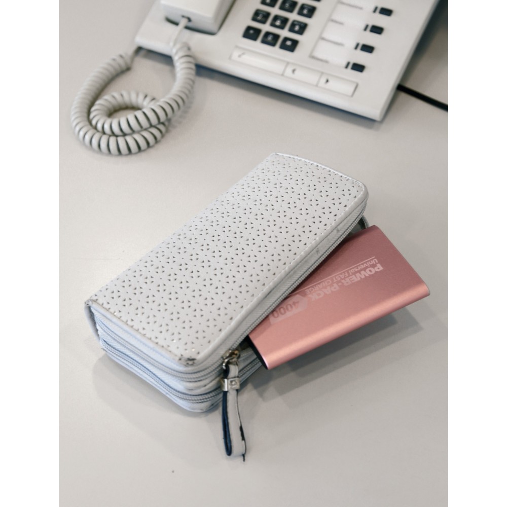 Sottile batteria d'emergenza ai polimeri di litio con 2 porte Usb. Leggera struttura in alluminio che facilita la dispersione di calore.