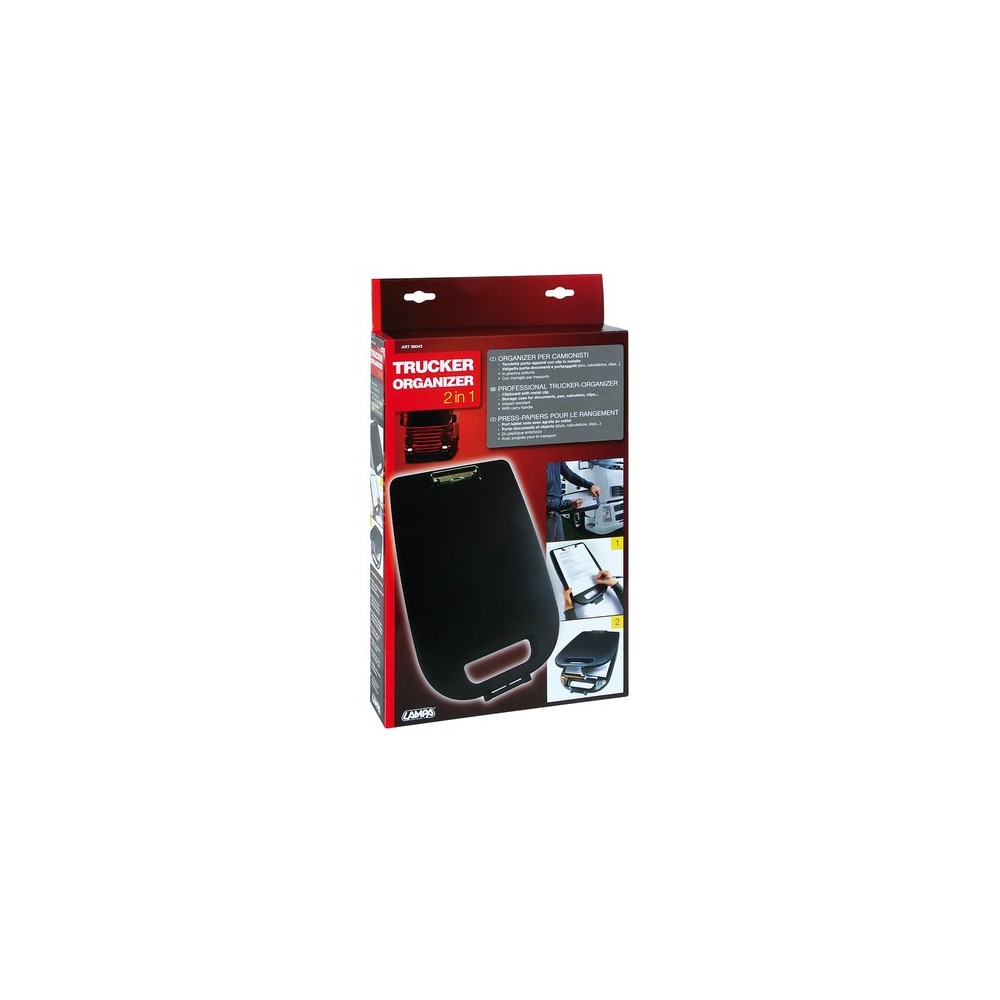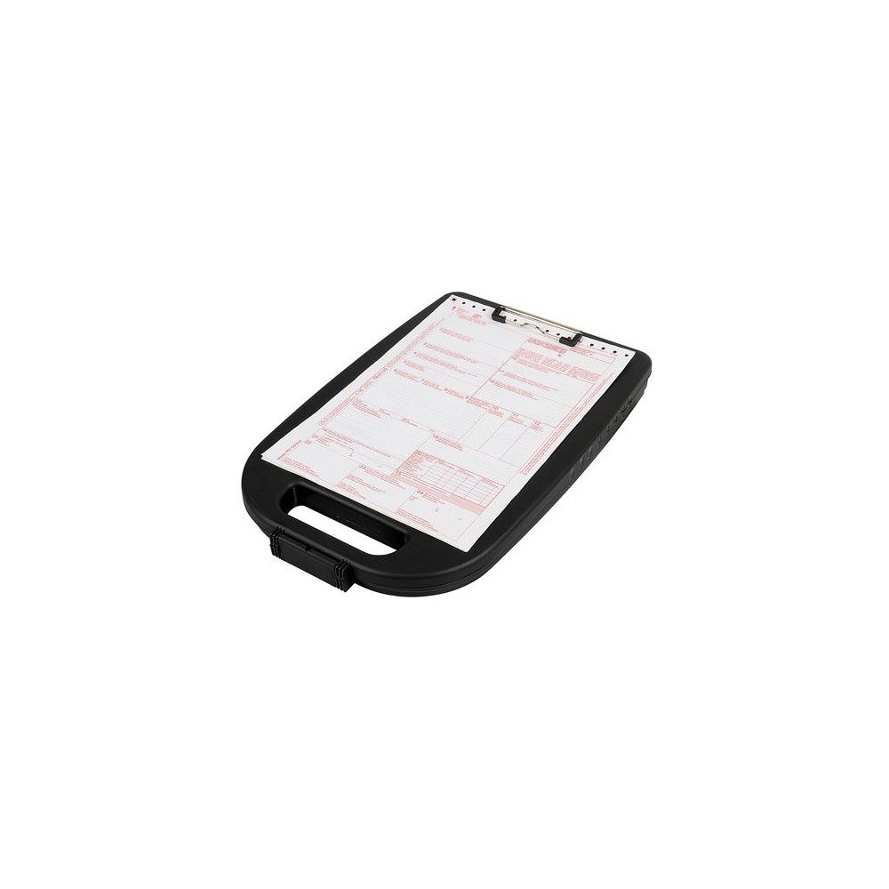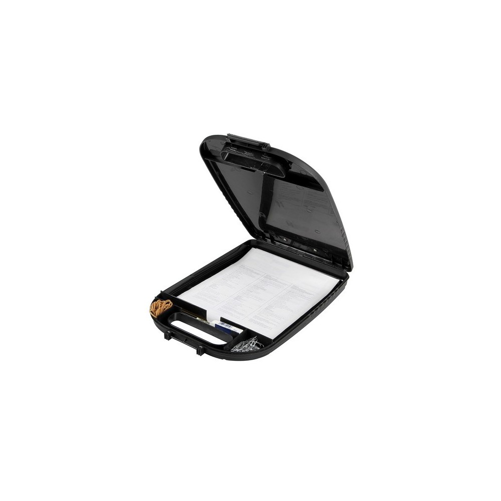 Tavoletta porta-appunti con clip in metallo. Valigetta porta-documenti e portaoggetti (biro, calcolatrice, clips...) In plastica antiurto. Con maniglia per trasporto