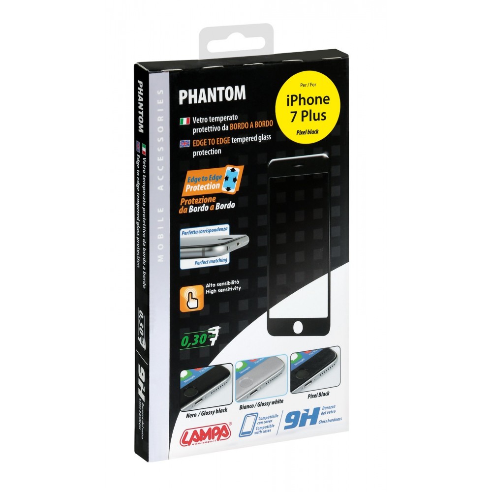 Phantom vetro temperato protettivo da bordo a bordo - Apple iPhone 7 Plus - Pixel Black
