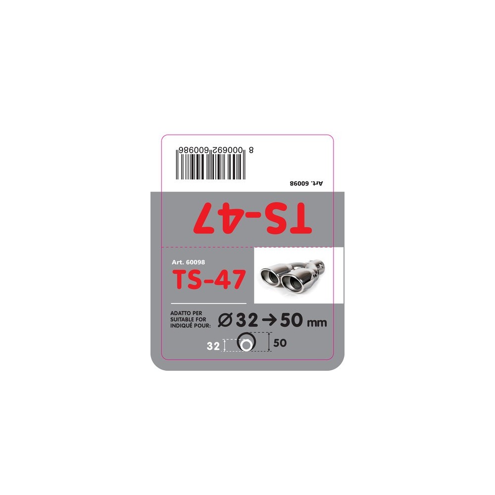 TS 47 Terminale di scarico in acciaio inox lucidato diametro 32-50 mm