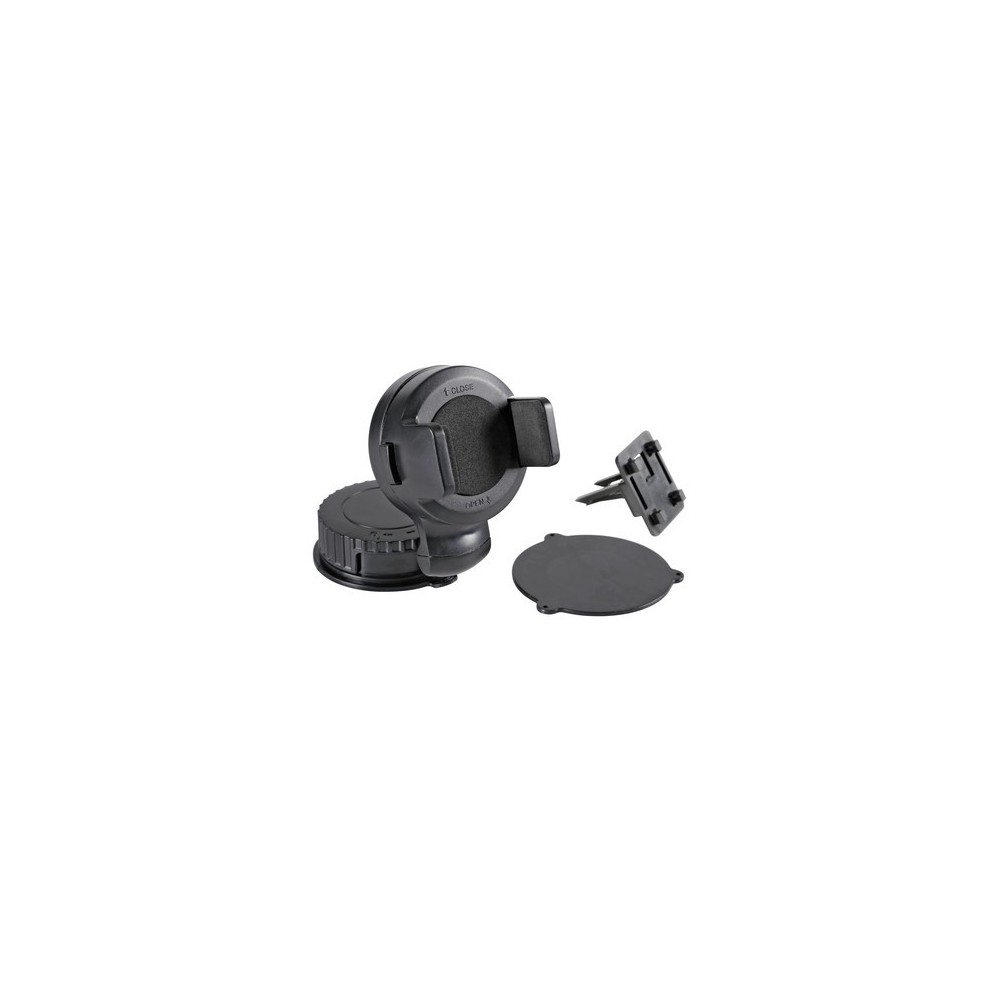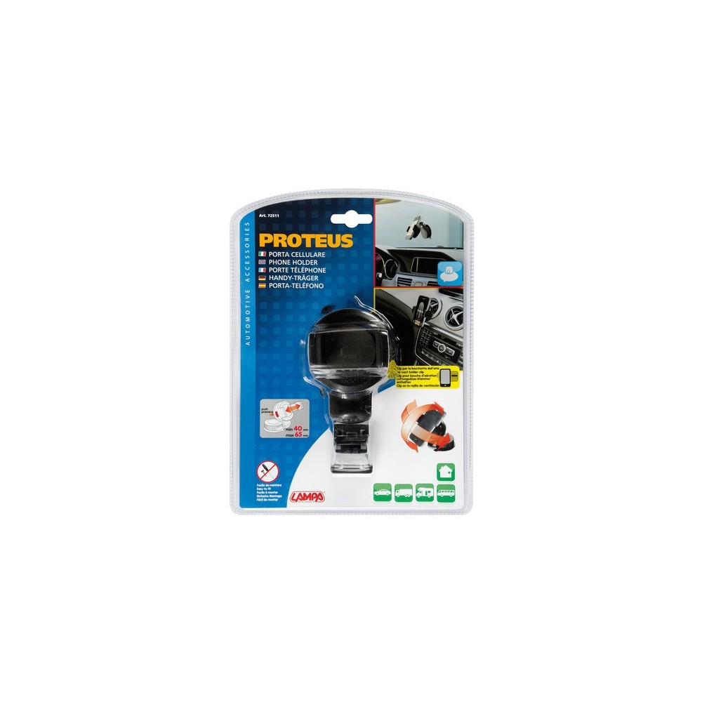 Pratico e funzionale, completamente regolabile, con pulsante di rilascio telefono. Doppio sistema di montaggio: a ventosa o clip per bocchette aerazione. La ventosa può essere applicata al parabrezza oppure sul cruscotto utilizzando la speciale base adesiva.