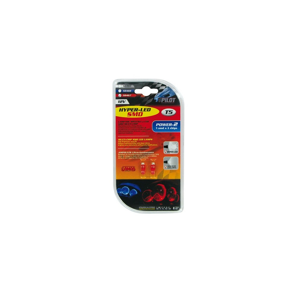 12V Hyper-Led 2 - 1 SMD x 2 chips - T5 - W2x4.6d - 2 pz in blister - Rosso