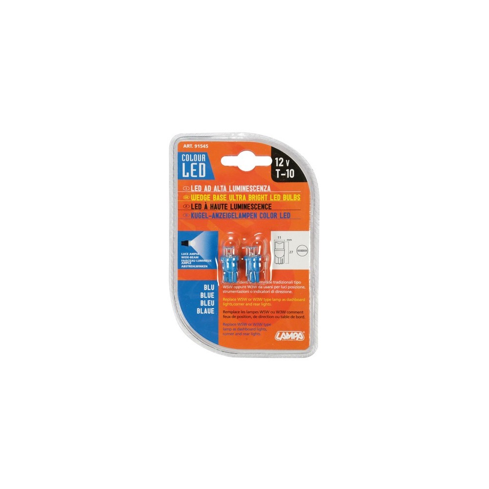 12V-W2.1x9.5d - Adatte per luci di posizione, lampeggianti, cruscotto... Specifici per il montaggio in sostituzione alle comuni lampade W5W con zoccolo in vetro NON OMOLOGATE PER USO STRADALE. Utilizzare esclusivamente su veicoli da competizione, da esposizione, per uso nel fuoristrada o su strade private.