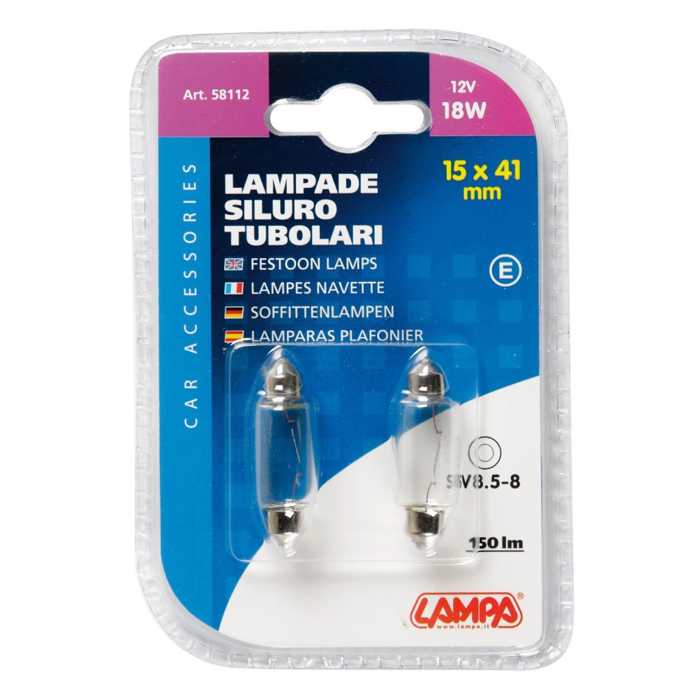 12V Lampada siluro - 15x41 mm - 18W - SV8.5-8 - 2 pz in blister