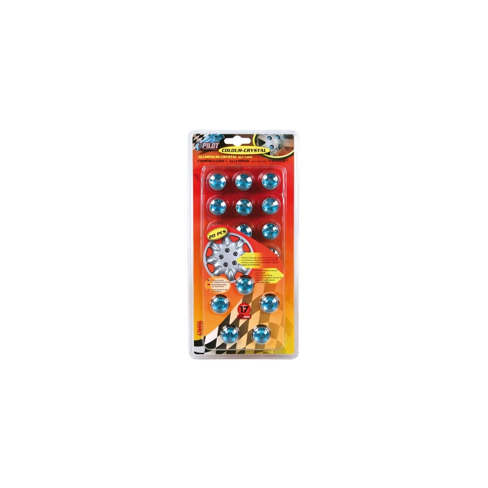 Kit 20 copribulloni diametro 17 mm blu con inserto crystal