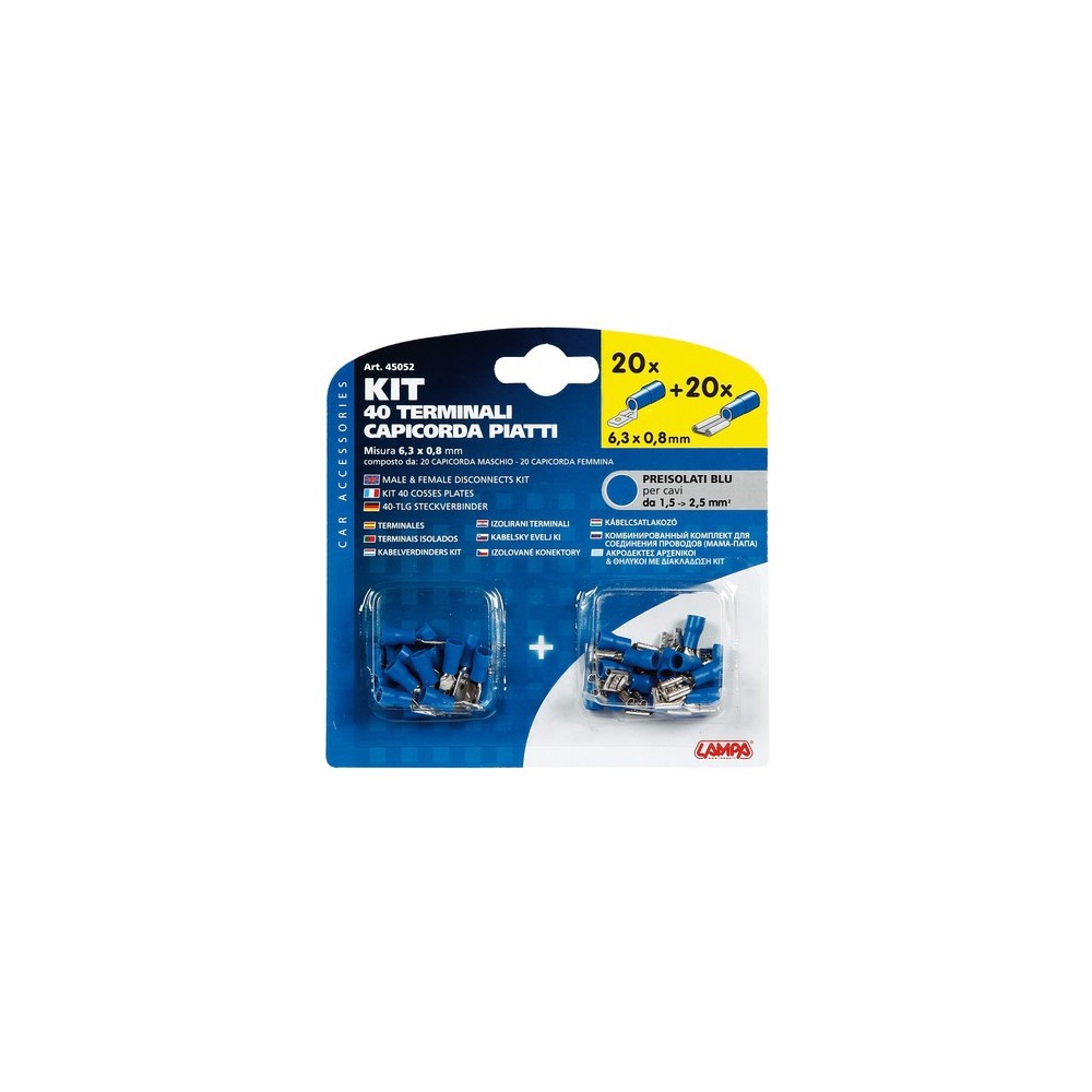 Kit 40 terminali capicorda piatti blu
