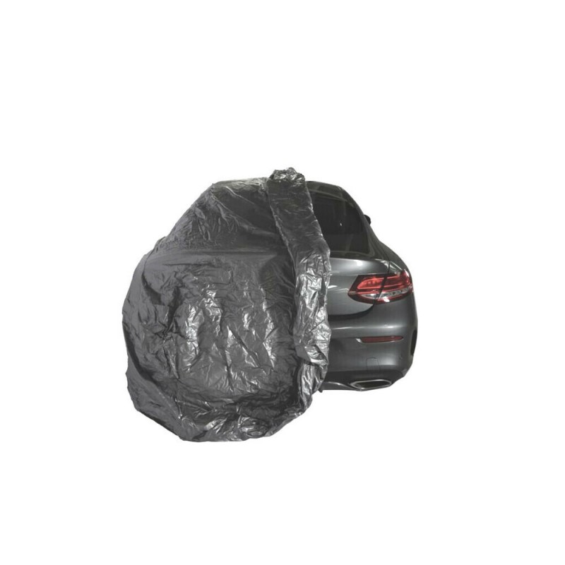 Si fissa tramite cinghie di sicurezza che si agganciano ai cerchi delle ruote e ai paraurti, calzando perfettamente alla vettura.