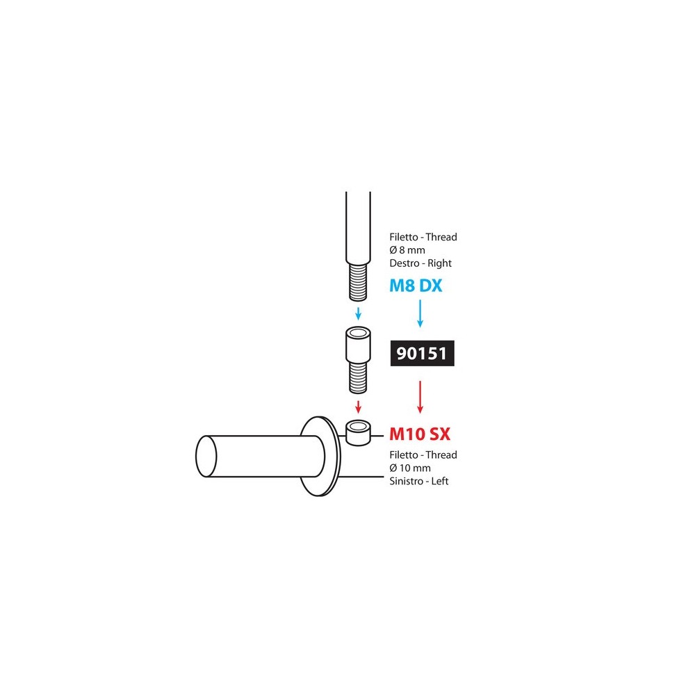 Adattatore per specchi moto Filetto diametro 8 mm destro - diametro 10 mm sinistro