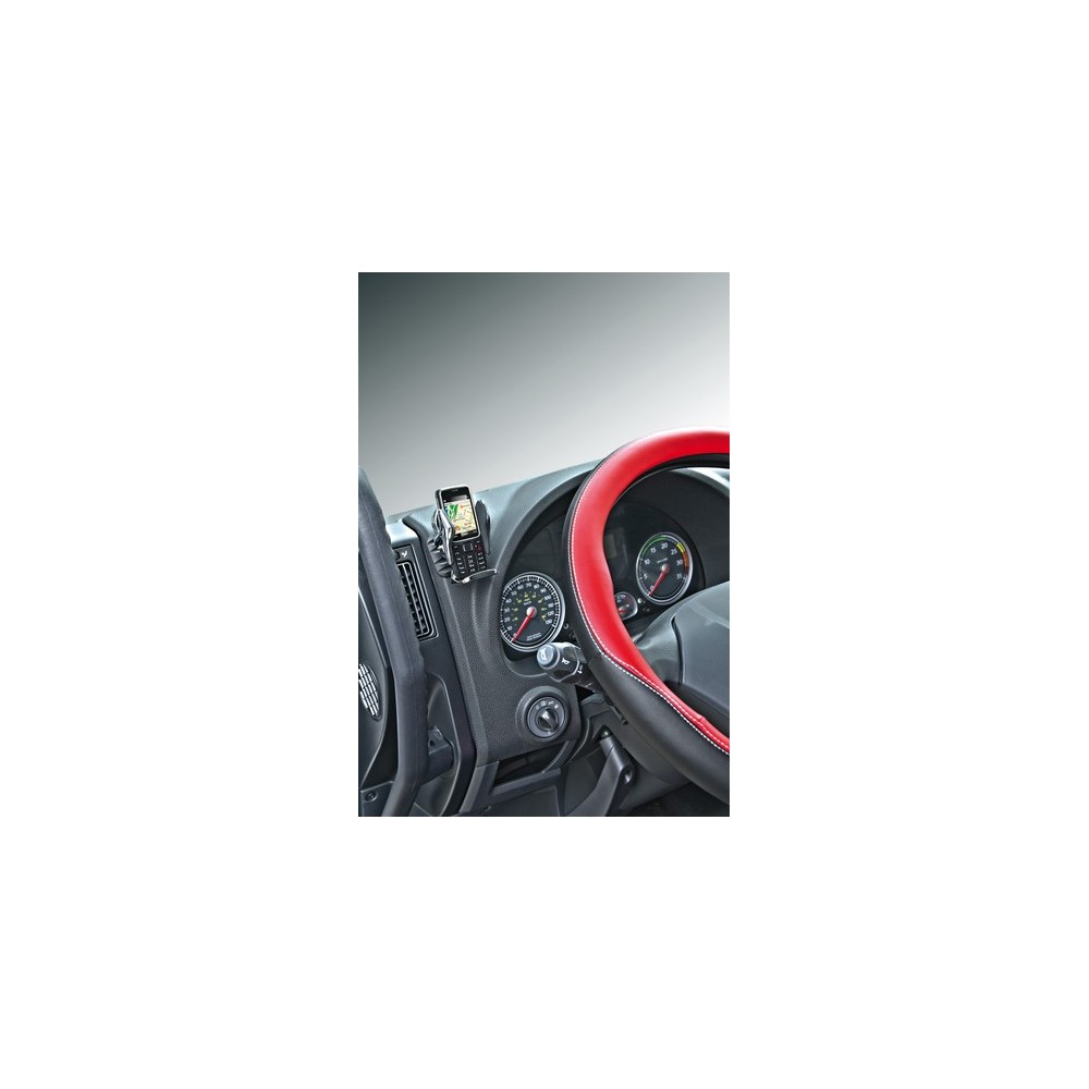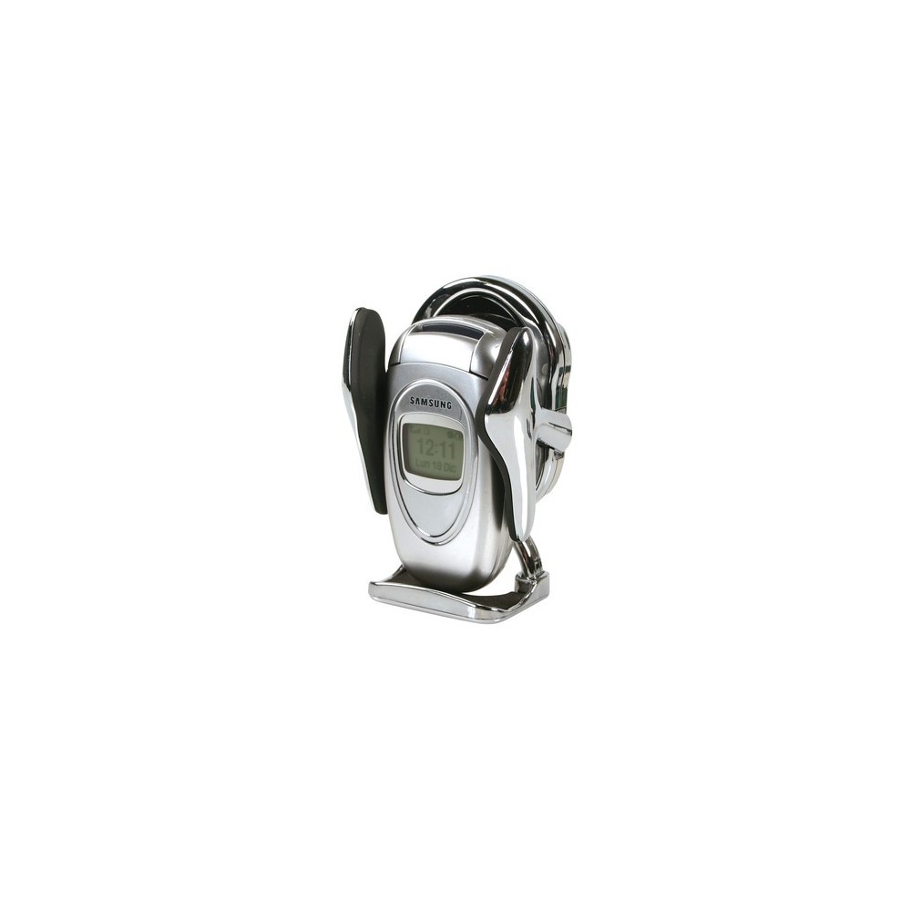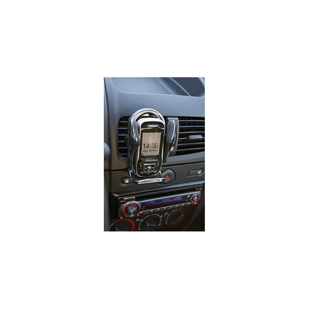 Alette di contenimento regolabili in larghezza. Inserti in gomma per evitare graffi e vibrazioni Doppio sistema di fissaggio: base adesiva o clips alle bocchette di aerazione