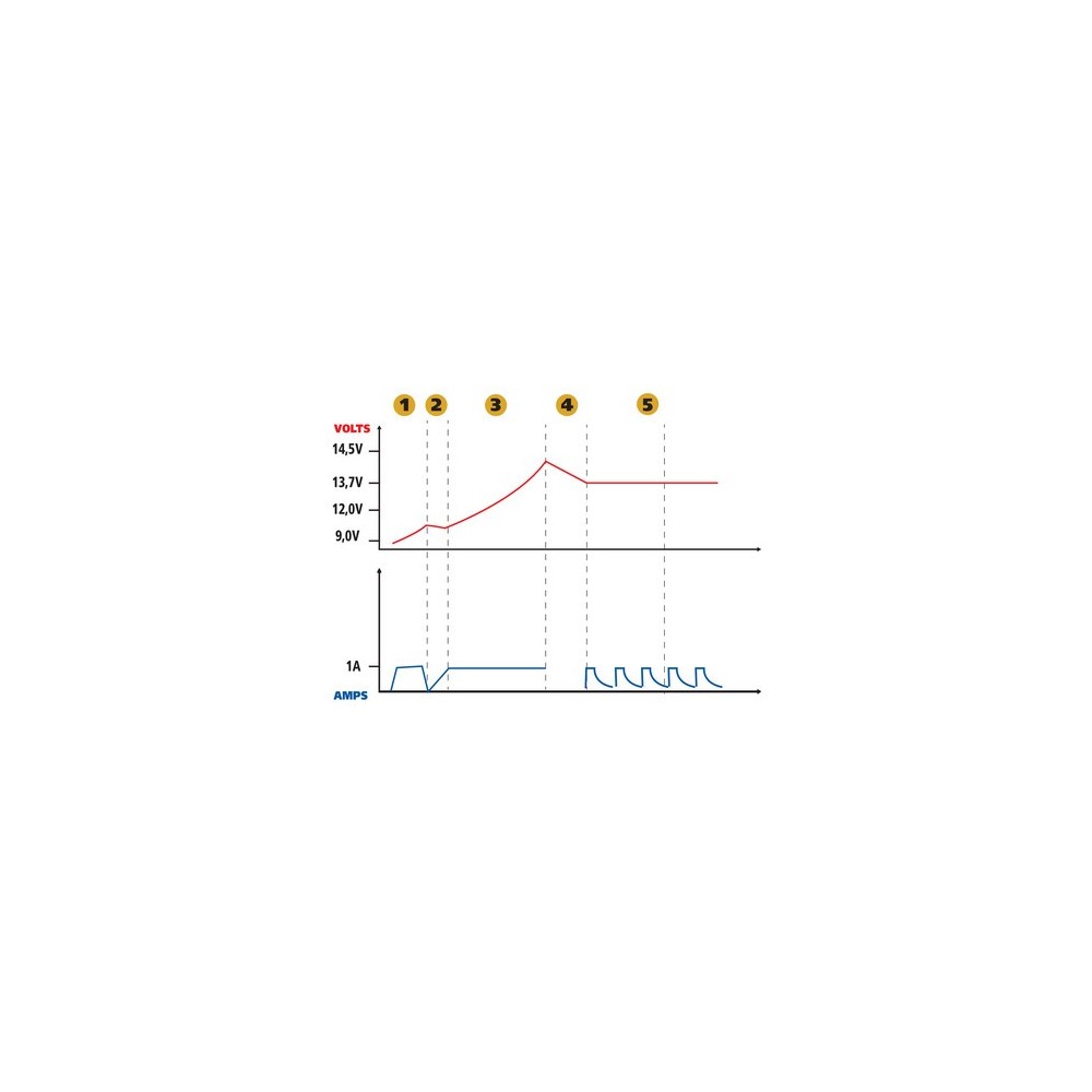 • Universale per tutte le batterie al Piombo, SM, Gel e AGM con capacità da 4-120 Ah